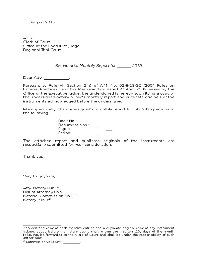 More specifically, the undersigneds monthly report for July 2015 pertains to