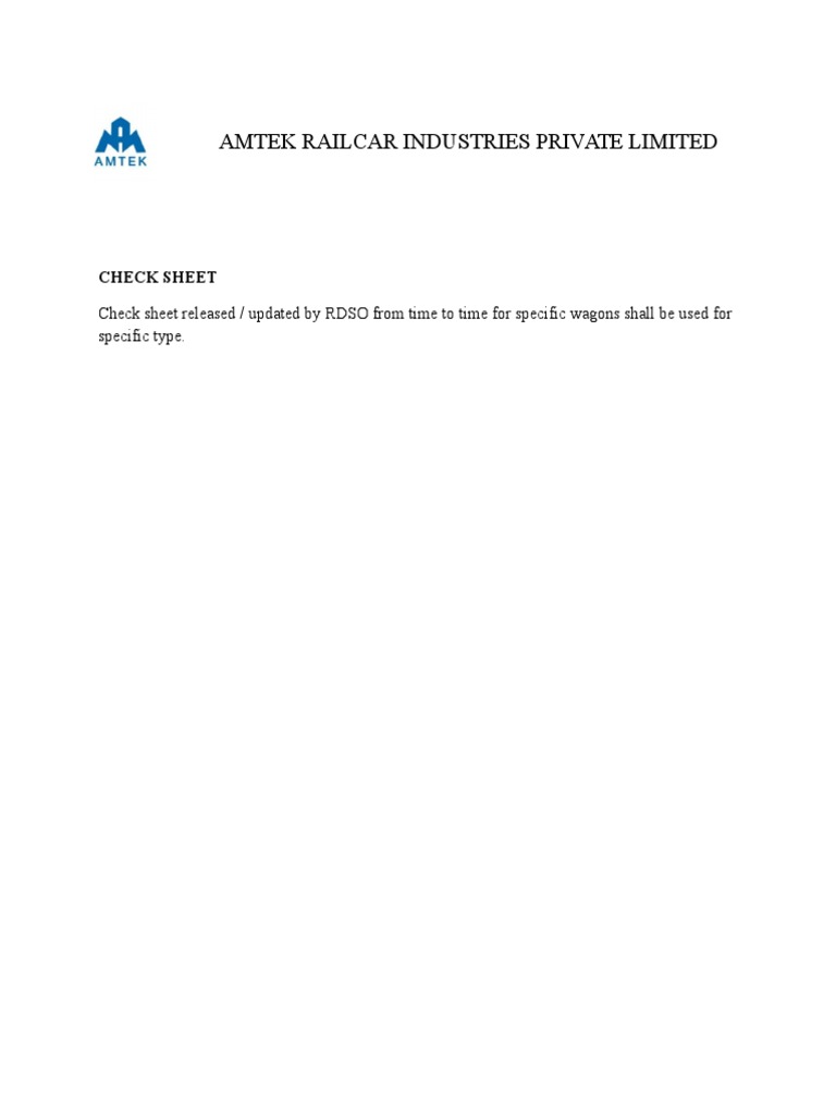 Check sheet released / updated by RDSO from time to time for specific wagons shall be used for