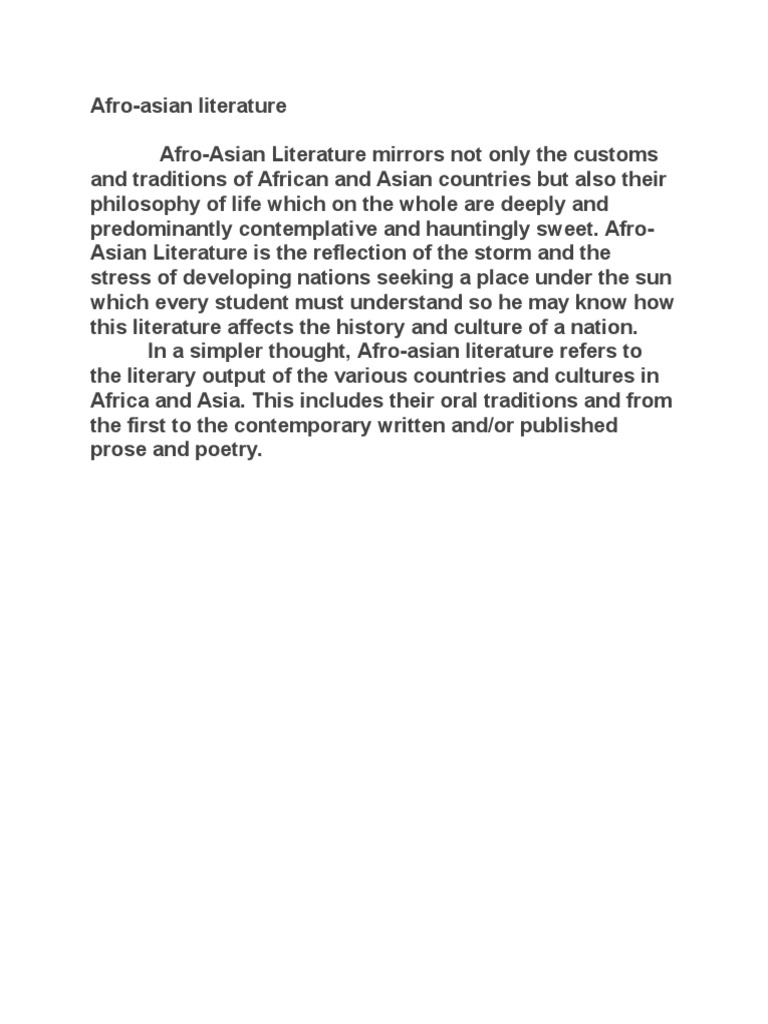 predominantly contemplative and hauntingly sweet. AfroAsian Literature is the reflection of the storm and the
