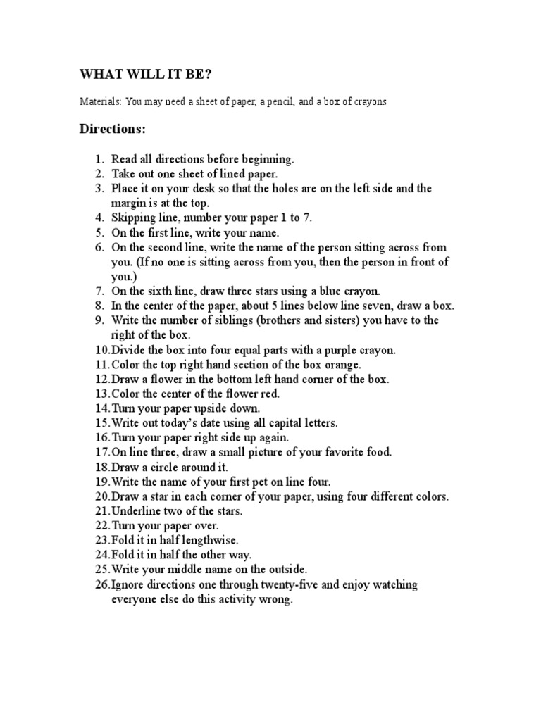 1. Read all directions before beginning.