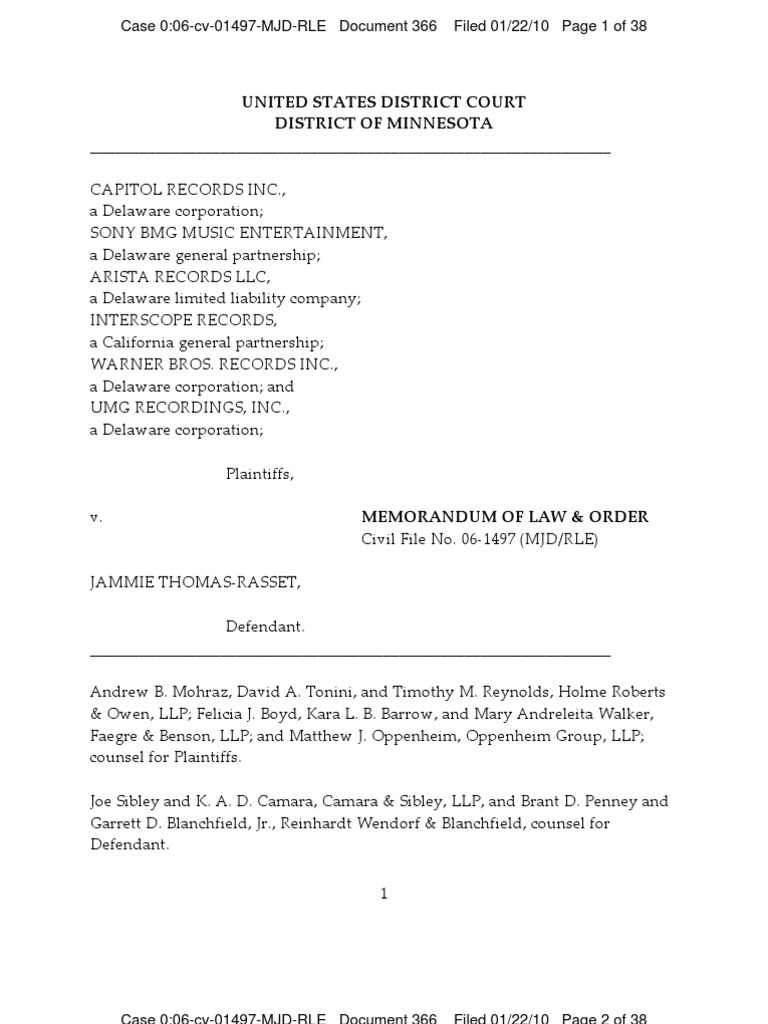 The Court denies Thomas‐Rasset’s motion for a new trial based on the