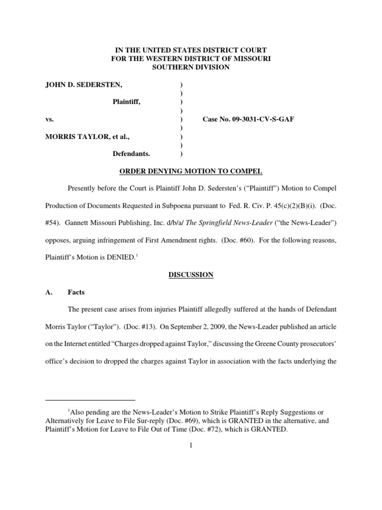 Morris Taylor (“Taylor”). (Doc. #13). On September 2, 2009, the News-Leader published an article