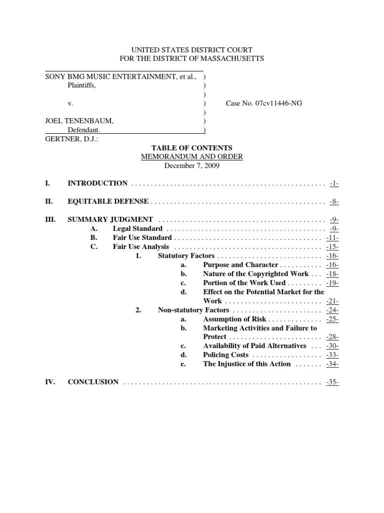 Sony V Tenenbaum 12-07-09