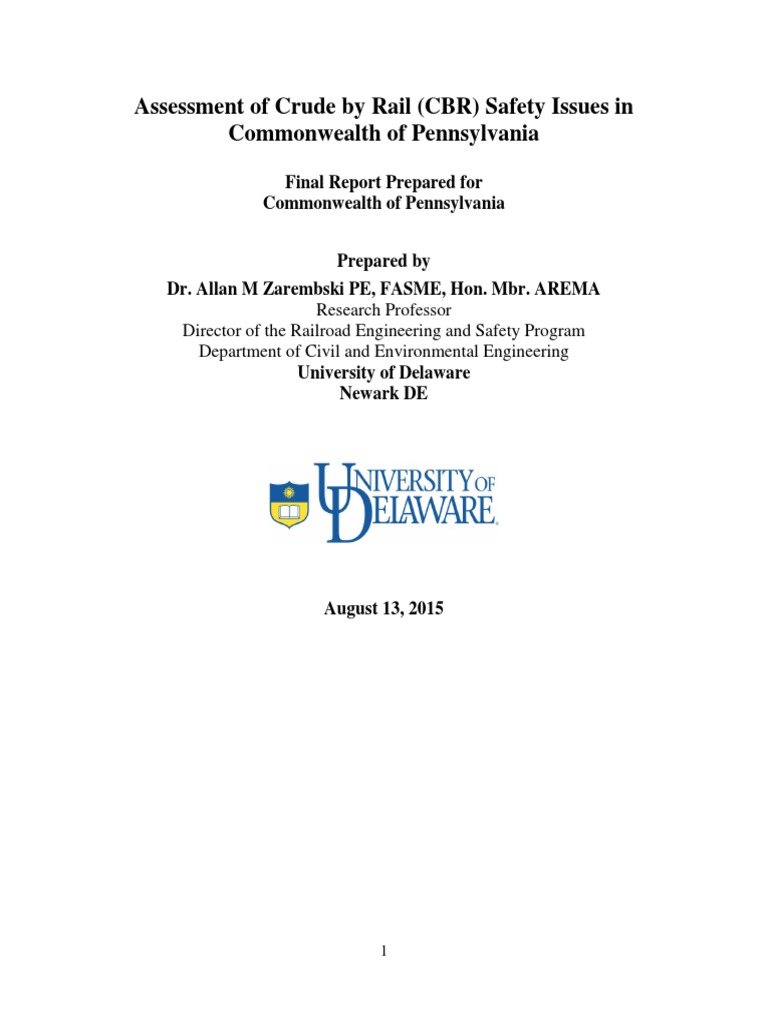 Assessment of Crude by Rail (CBR) Safety Issues in Commonwealth of Pennsylvania