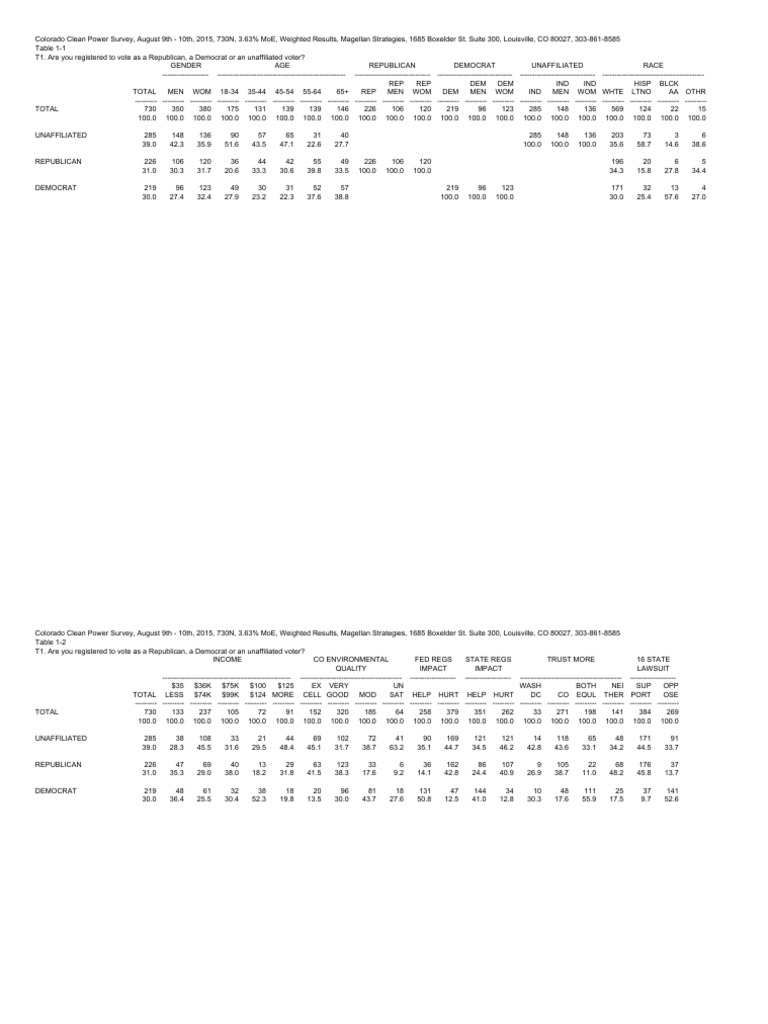 Colorado Clean Power Plan Survey Crosstabs 081115