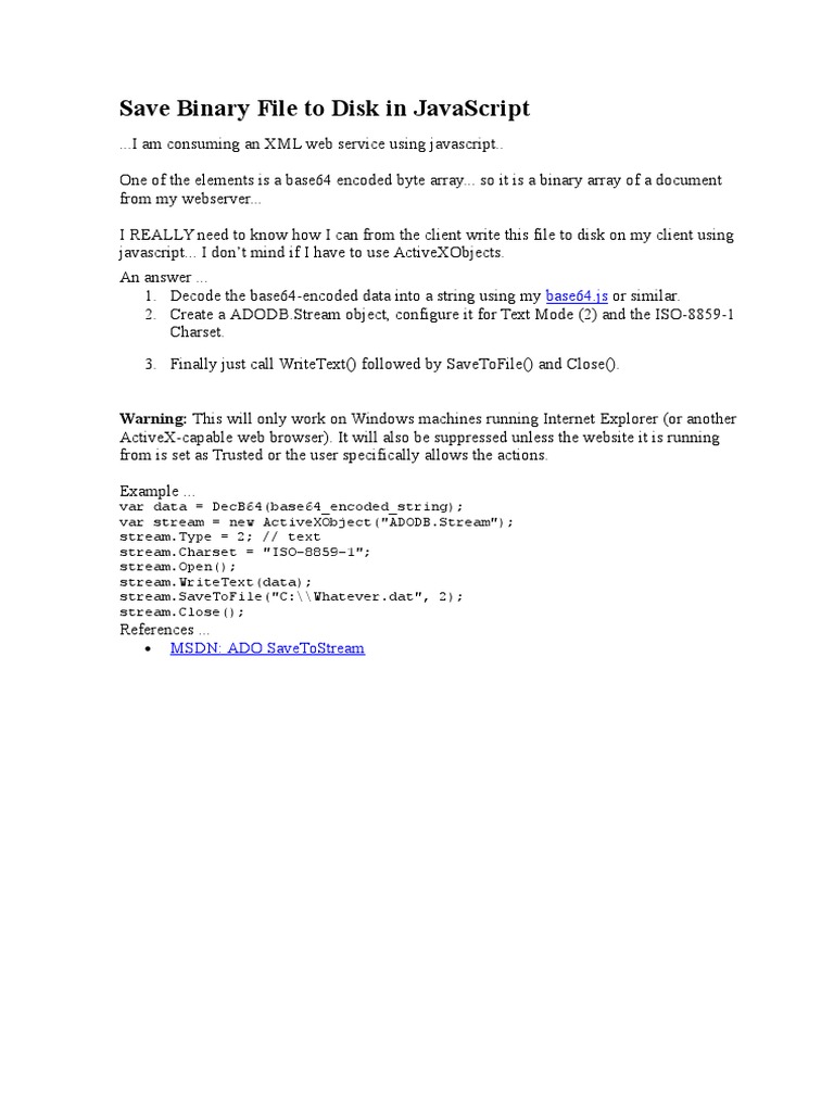 I REALLY need to know how I can from the client write this file to disk on my client using