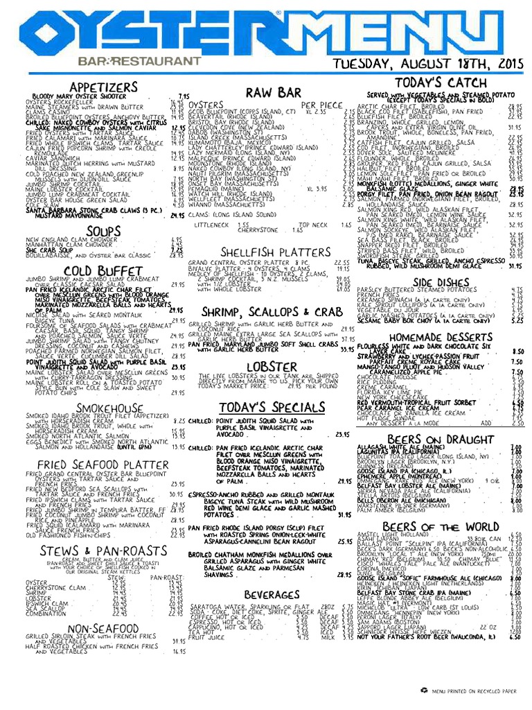 BROILED BLUEPOINT OYSTERS, ANCHOVY BUTTER 14.95 BEAVERTAIL (RHODE ISLAND)