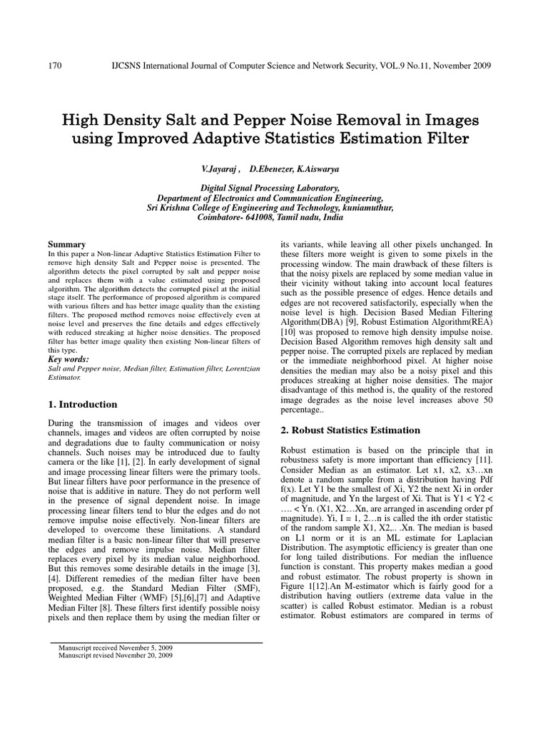 Median Filter [8]. These filters first identify possible noisy