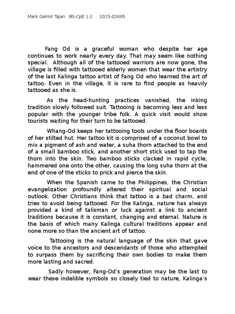 tries to avoid being tattooed. For the Kalinga, nature has always