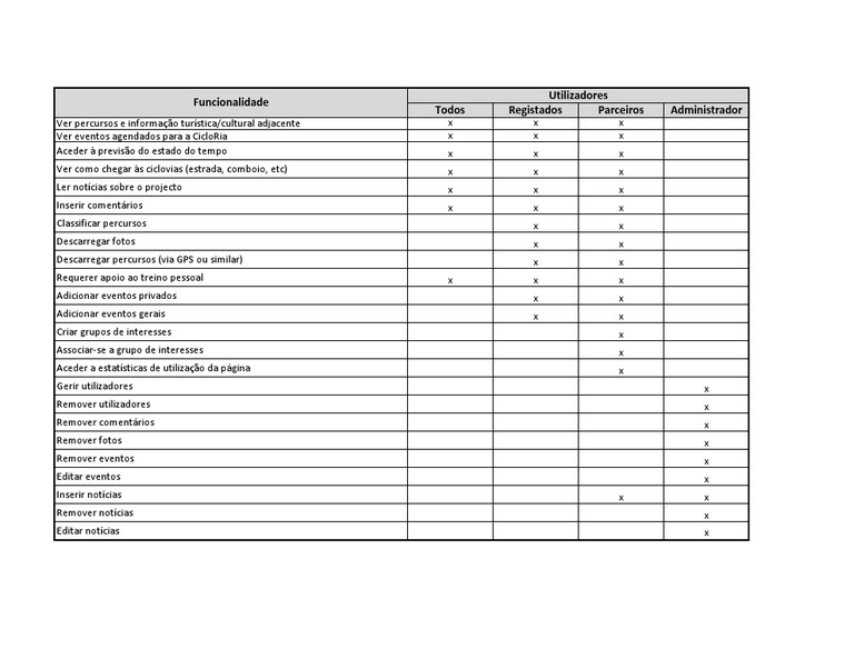 Ver como chegar às ciclovias (estrada, comboio, etc) x x x