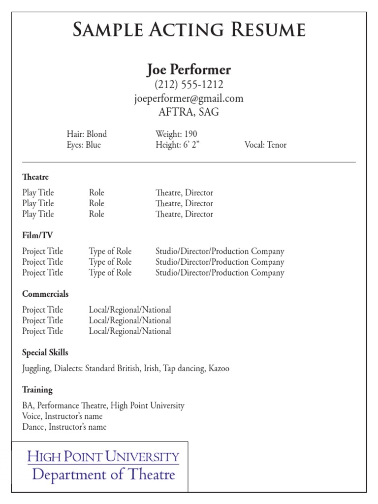 Sample Acting Resume