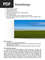 Firstly, in the reading passage some general information about Stonehenge