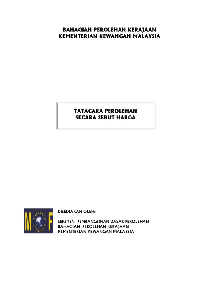 bidang berkaitan. Sebut harga hendaklah terbuka kepada