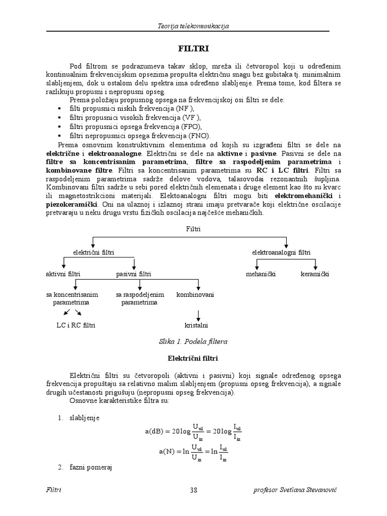 Elektrini filtri su etvoropoli (aktivni i pasivni) koji signale odreenog opsega