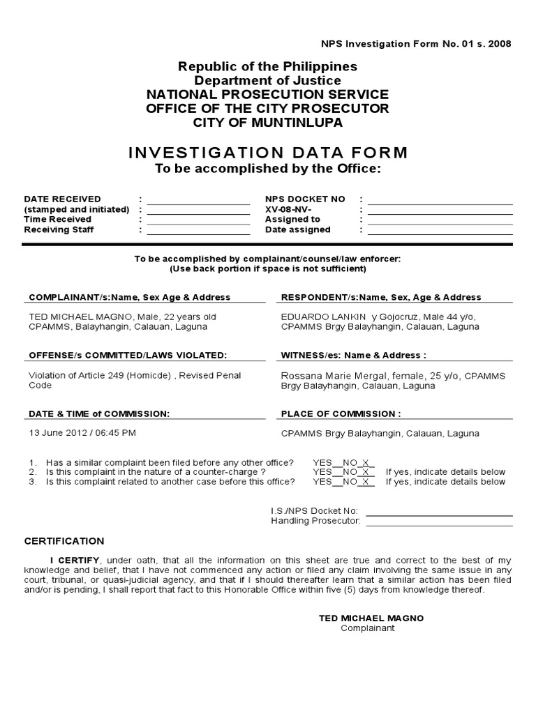 NPS Investigation Form No. 01 s.