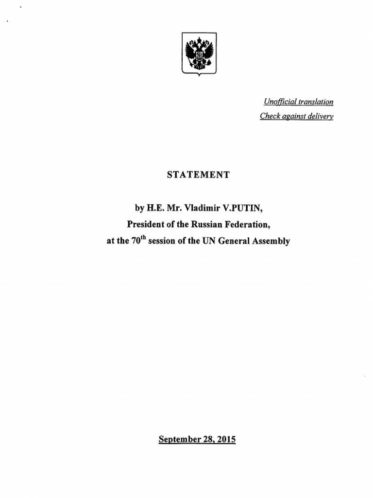 Documents Similar To Vladimir Putin's 2015 Address to the United Nations