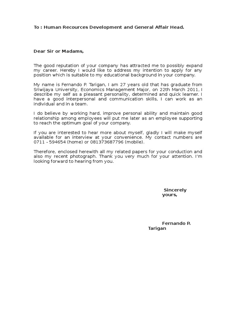 my career. Hereby I would like to address my intention to apply for any