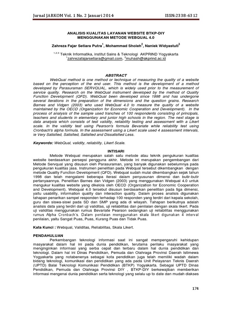 Kata Kunci : Webqual, Validitas, Reliabilitas, Skala Likert.