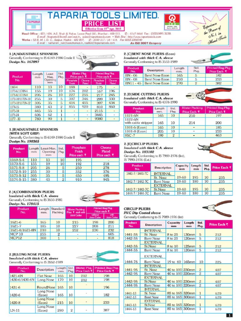 * TAPARIA TOOLS ARE ECONOMICAL *