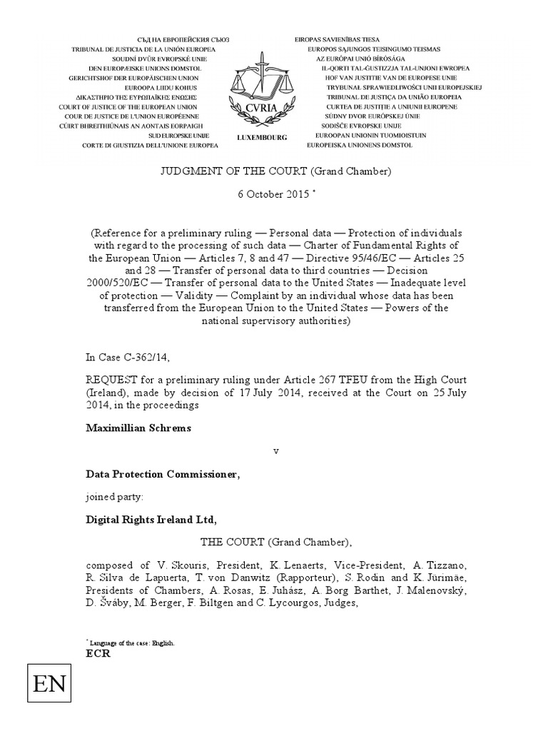 JUDGMENT OF THE COURT (Grand Chamber) 6 October 2015