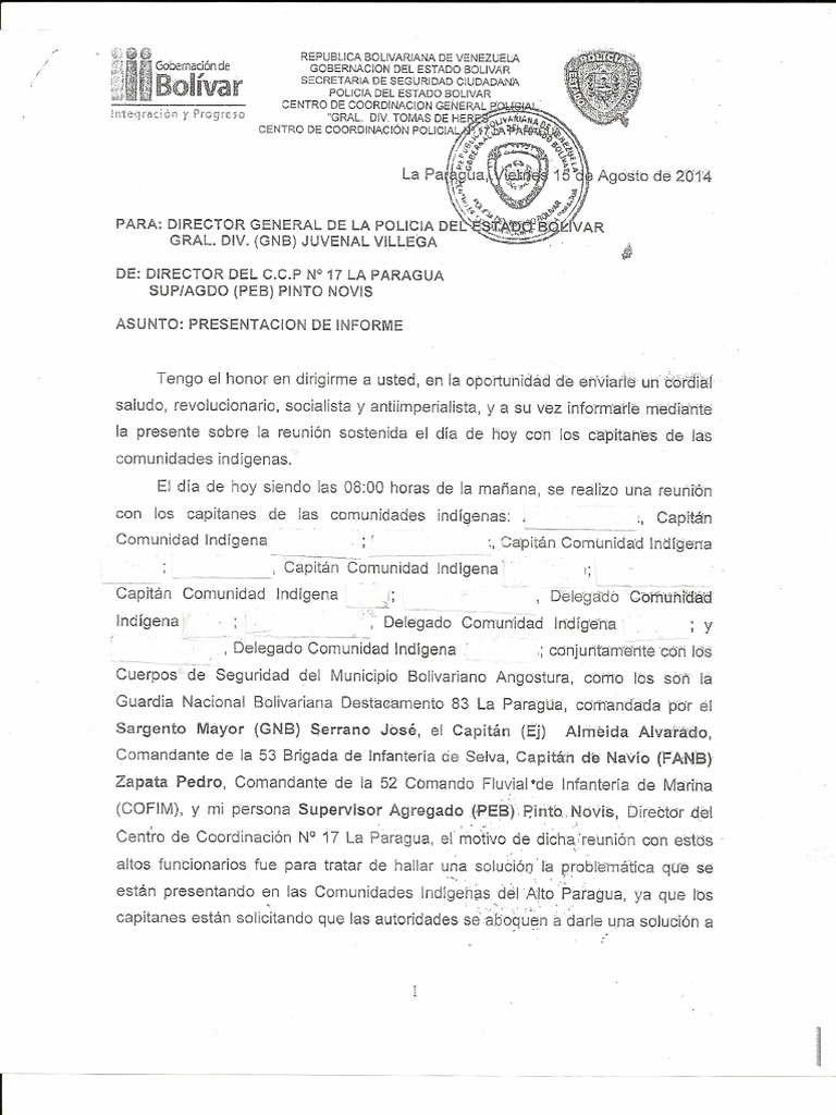 "Los capitanes están solicitando que las autoridades se aboquen a darle una solución a las presuntas irregularidades que están presentando, por los que se hacen llamar Sindicatos Mineros los cuales están cometiendo barbaridades entre las cuales destacan los actos lascivos con las menores, así como también con las mujeres de los mismos capitanes de las comunidades a quienes de igual forma los golpean y maltratan", indica el documento.