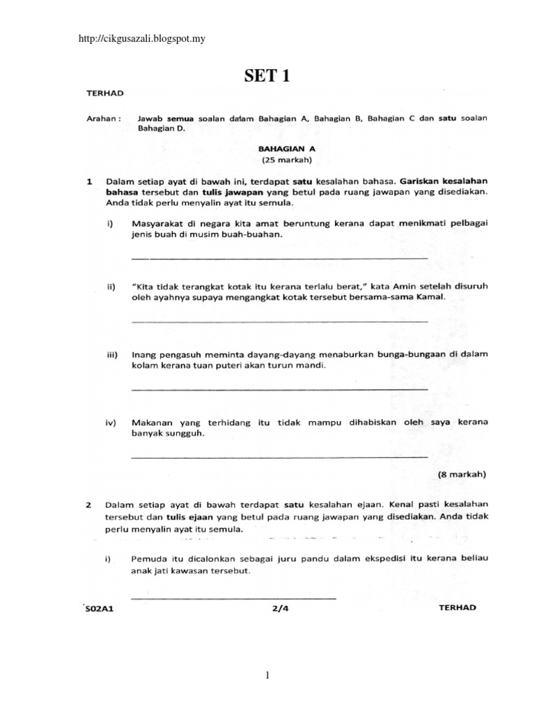 Kertas 2 Ujian 1 Matematik Tahun 4