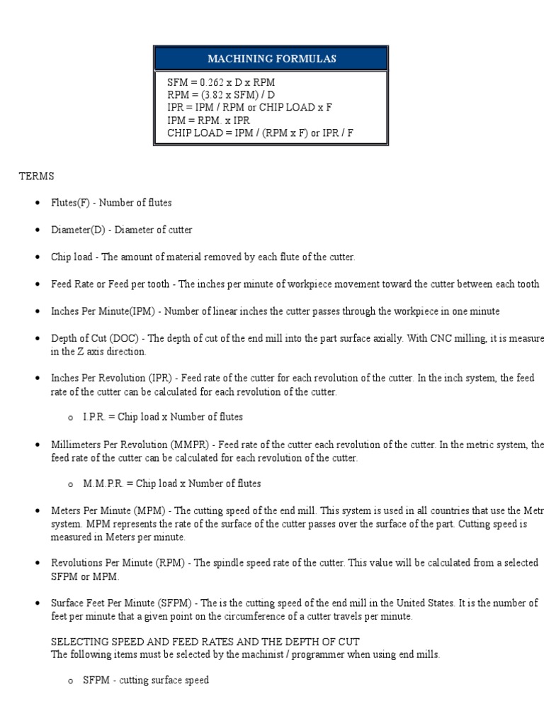 MACHINING FORMULAS