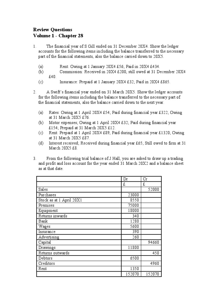 (a) Rent: Paid during 2007 £395, prepaid for 20X8 £45.