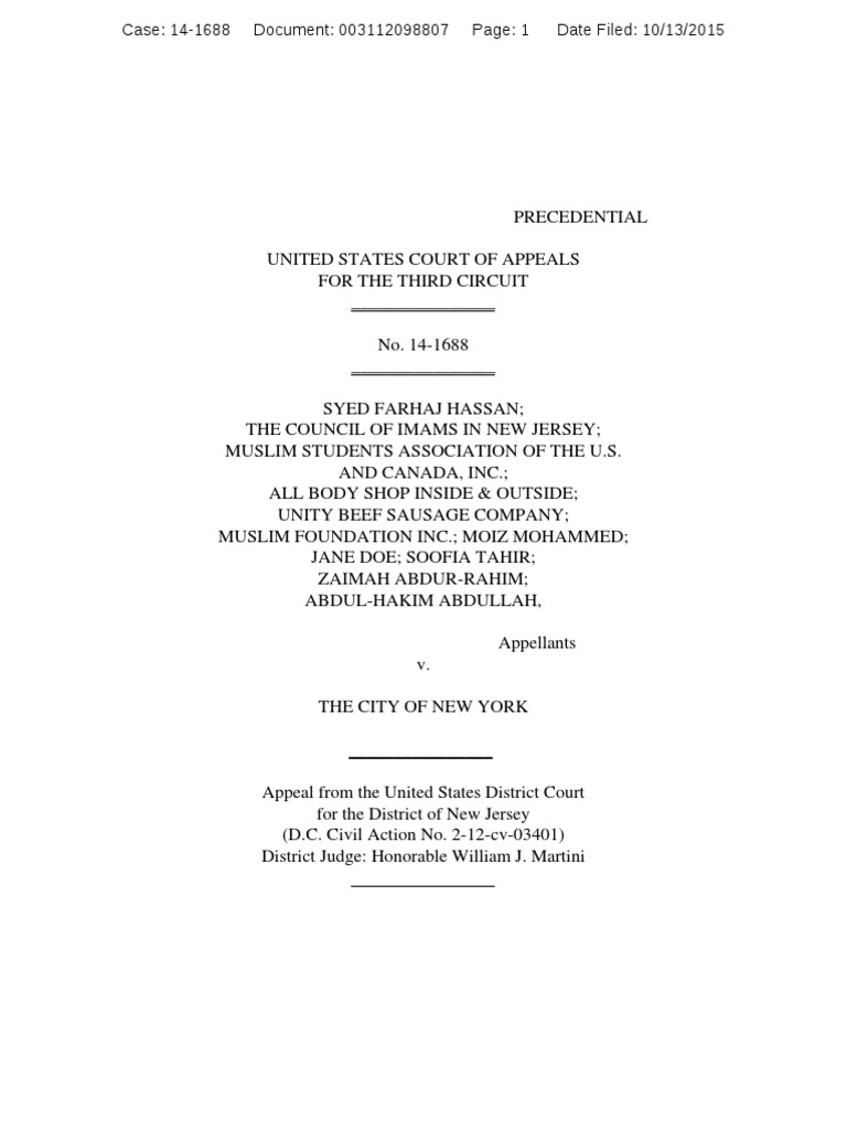 THE COUNCIL OF IMAMS IN NEW JERSEY;
