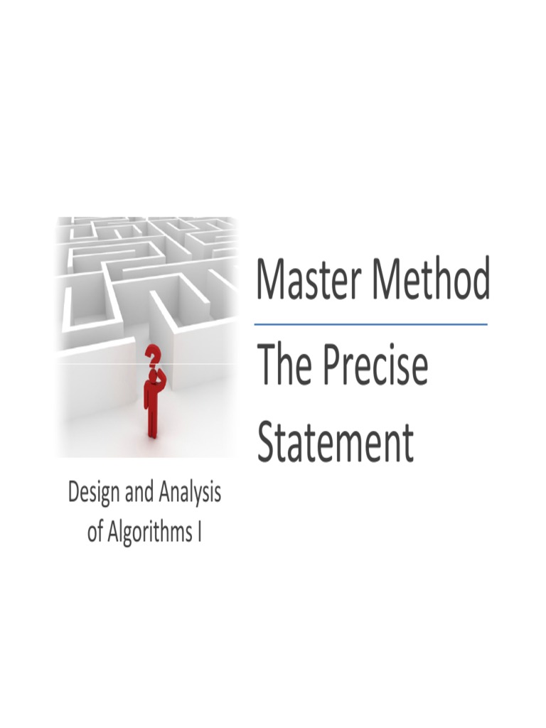 Master Method The Precise The Precise Statement: Design and Analysis of Algorithms I