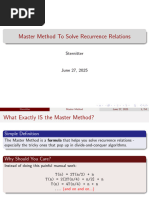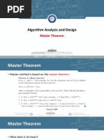 This document discusses an algorithm design and analysis technique called the Master Method. It provides an overview of the Master Method approach for solving recurrence relations that arise in the analysis of divide-and-conquer algorithms. The Master Method is presented as a precise statement and method for designing and analyzing algorithms.