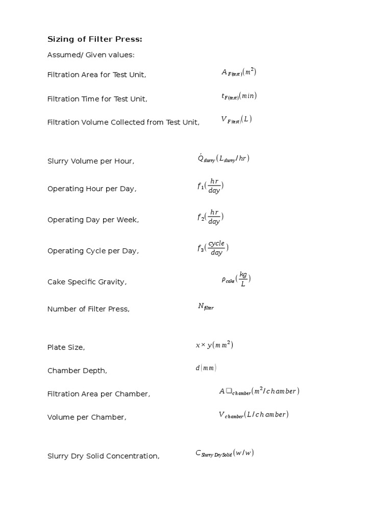 M Dry Solid =M cake C Cake Dry Solid kg Dry solid