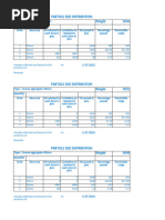 This document contains two graphs showing the relationship between sieve size and weight of particles. The first graph plots sieve size on the x-axis and weight of particles on the y-axis, showing an inverse relationship where smaller sieve sizes correspond to higher weights. The second table provides numerical data on sieve size (logged) and corresponding weight of particles measured, following the same inverse trend.