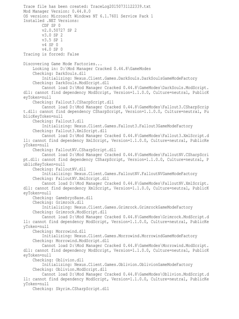 dll: cannot find dependency ModScript, Version=[Link], Culture=neutral, PublicK