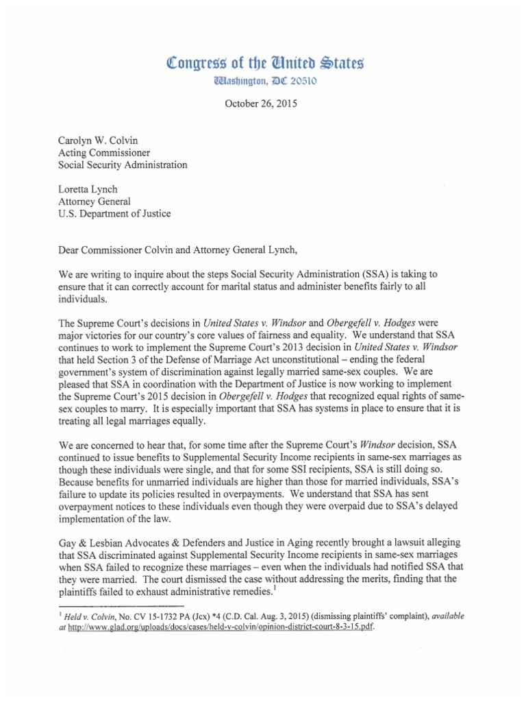U.S. Sens. Mark R. Warner and Tim Kaine (both D-VA) joined Senate and House colleagues to urge the Social Security Administration to implement the Supreme Court's decisions in U.S. v. Windsor and Obergefell v. Hodges as soon as possible.