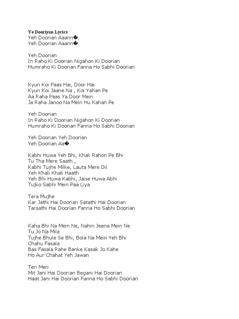 Ye Dooriyan Lyrics