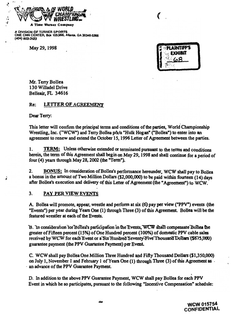 his Je will o he pincpa es d condons of te p, Wold Cponshp Wesing Inc (WCW") d e Bol p/a "Huk Hog (Boll) o tr into