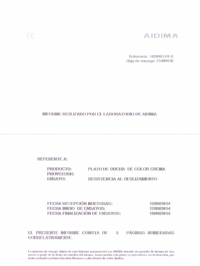 Informe de Ensayos Resbaladicidad Platos de Ducha de Resina ASEALIA ZL Description: Informe de ensayos de resbaladicidad de los platos de ducha de resina de ASEALIA realizados por AIDIMA.