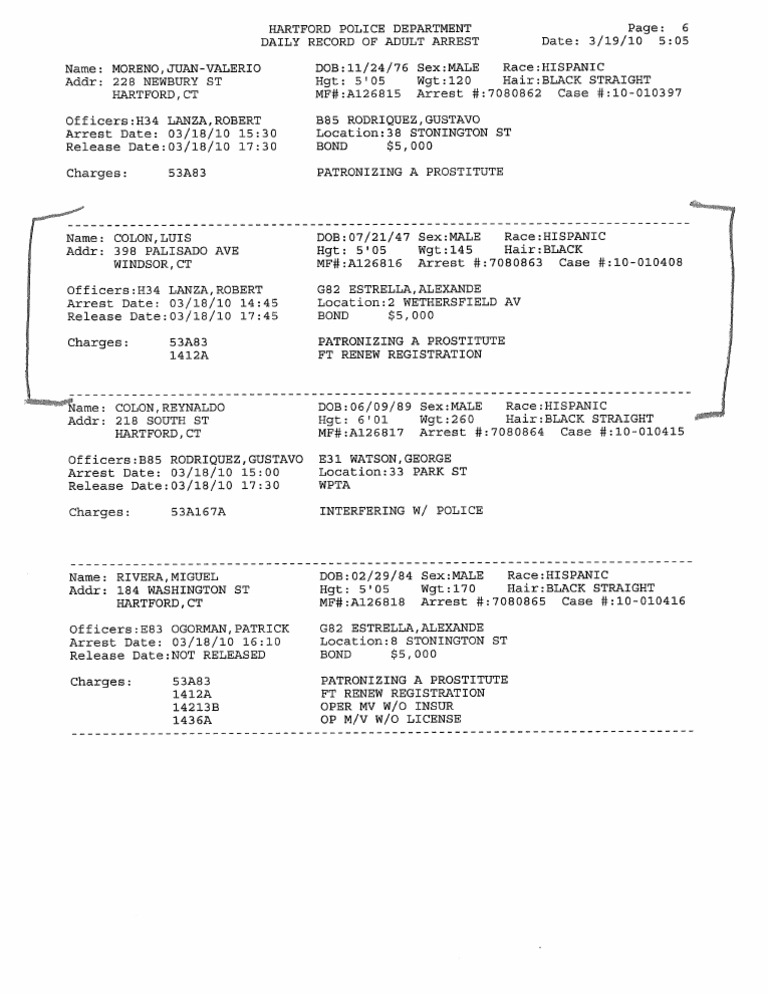 HPD - Luis Colon Arrest Log
