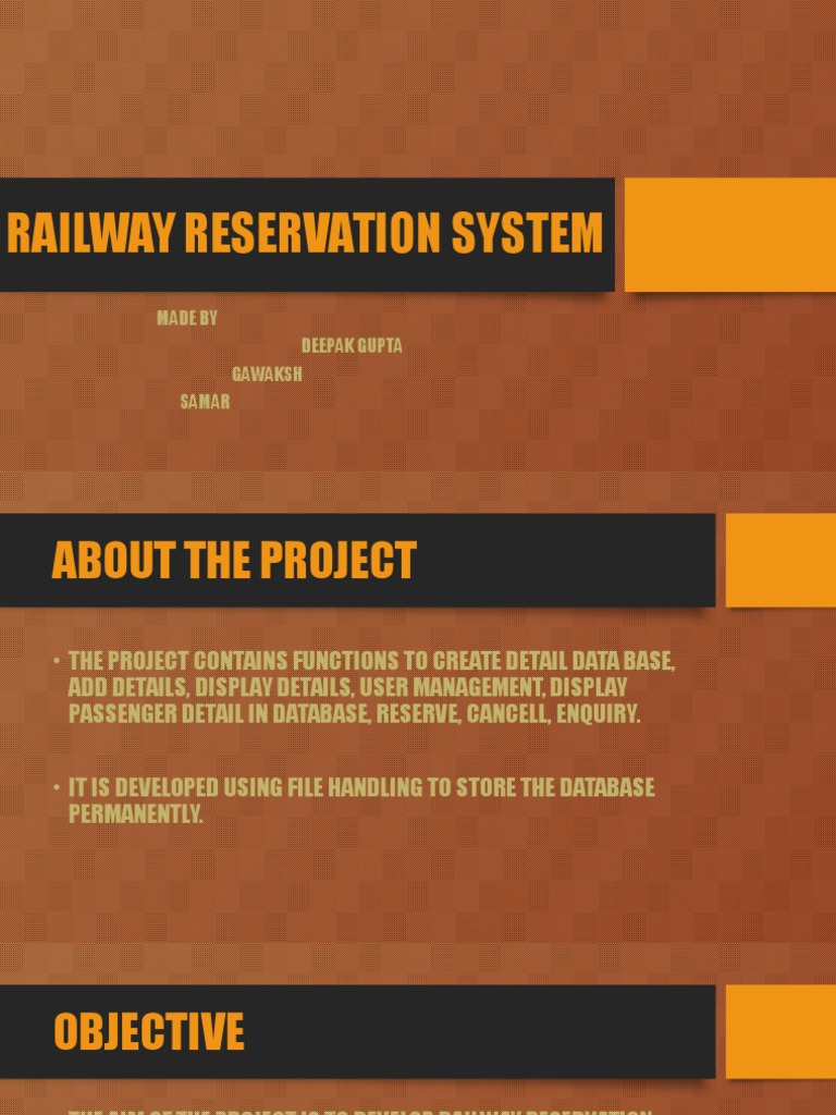 THE AIM OF THE PROJECT IS TO DEVELOP RAILWAY RESERVATION