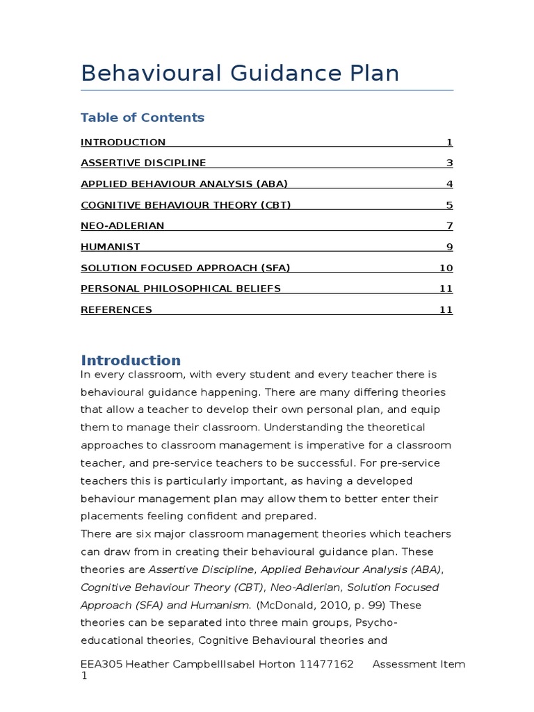 theories are Assertive Discipline, Applied Behaviour Analysis (ABA),