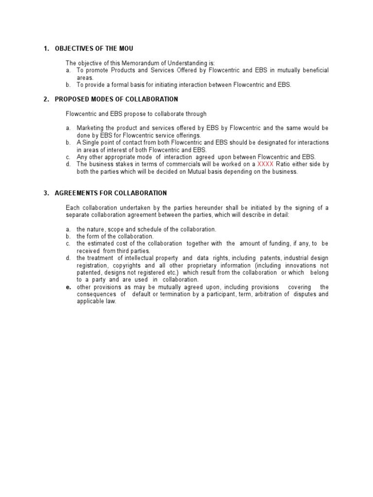 a. To promote Products and Services Offered by Flowcentric and EBS in mutually beneficial