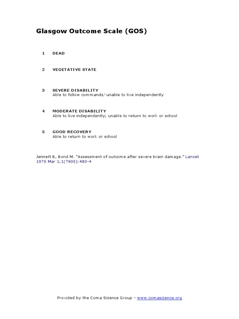 Jennett B, Bond M. Assessment of outcome after severe brain damage. Lancet