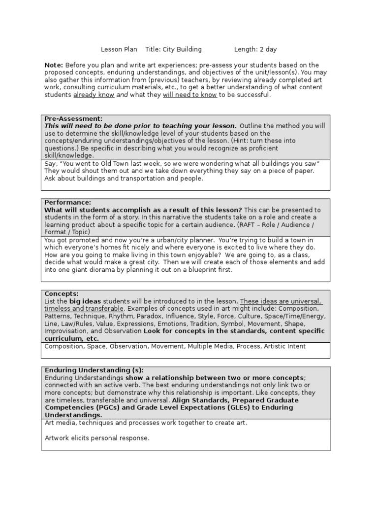 proposed concepts, enduring understandings, and objectives of the unit/lesson(s). You may