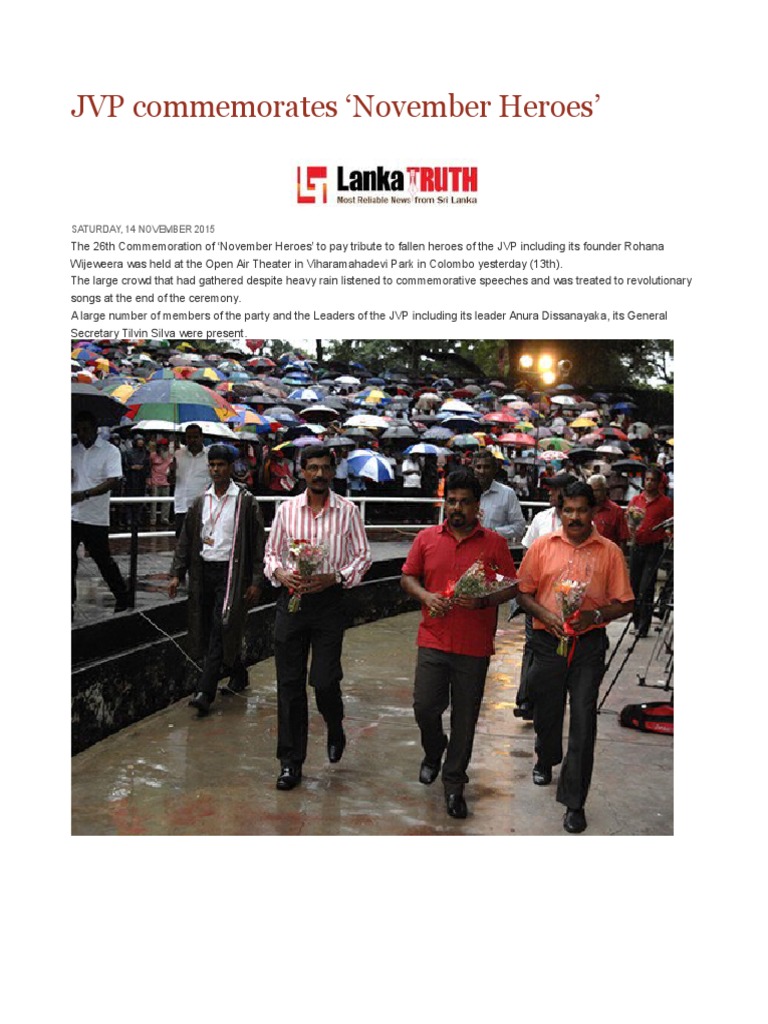 The 26th Commemoration of November Heroes to pay tribute to fallen heroes of the JVP including its founder Rohana
