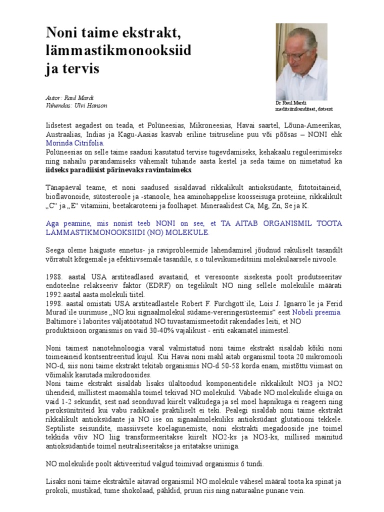 Noni taime ekstrakt, lämmastikmonooksiid ja tervis