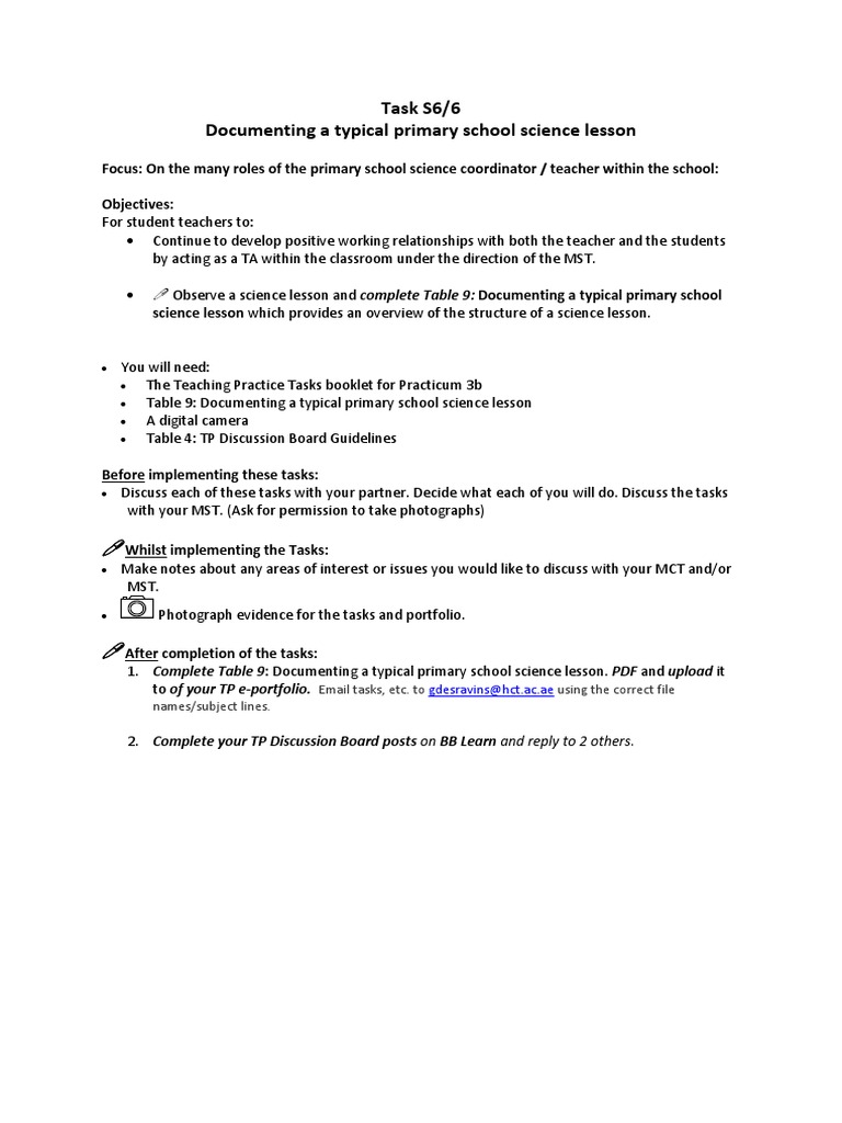 1. Complete Table 9: Documenting a typical primary school science lesson. PDF and upload it