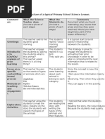 Table 9: Documenting a typical primary school science lesson