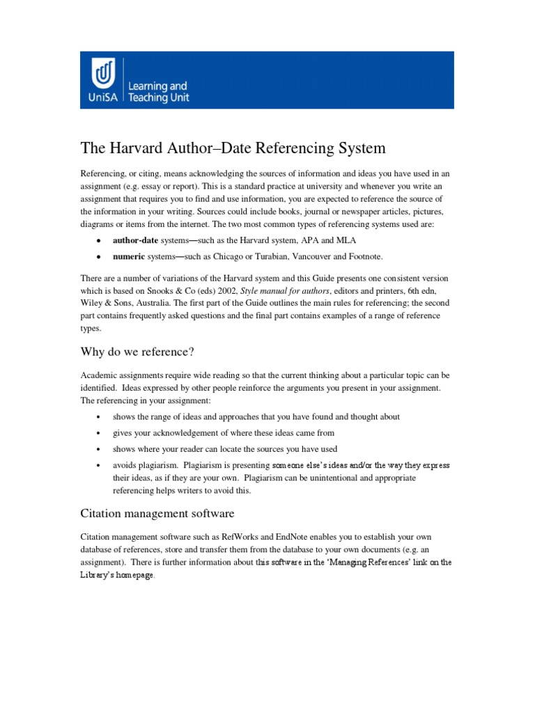 There are a number of variations of the Harvard system and this Guide presents one consistent version