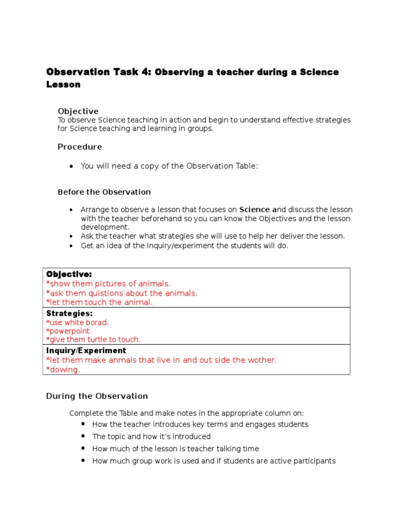 Ask the teacher what strategies she will use to help her deliver the lesson.